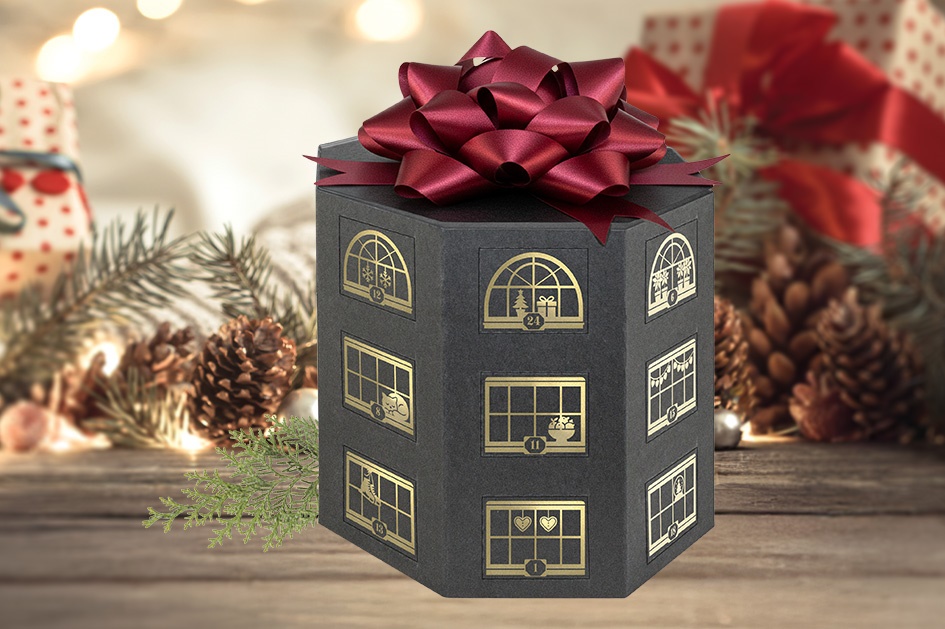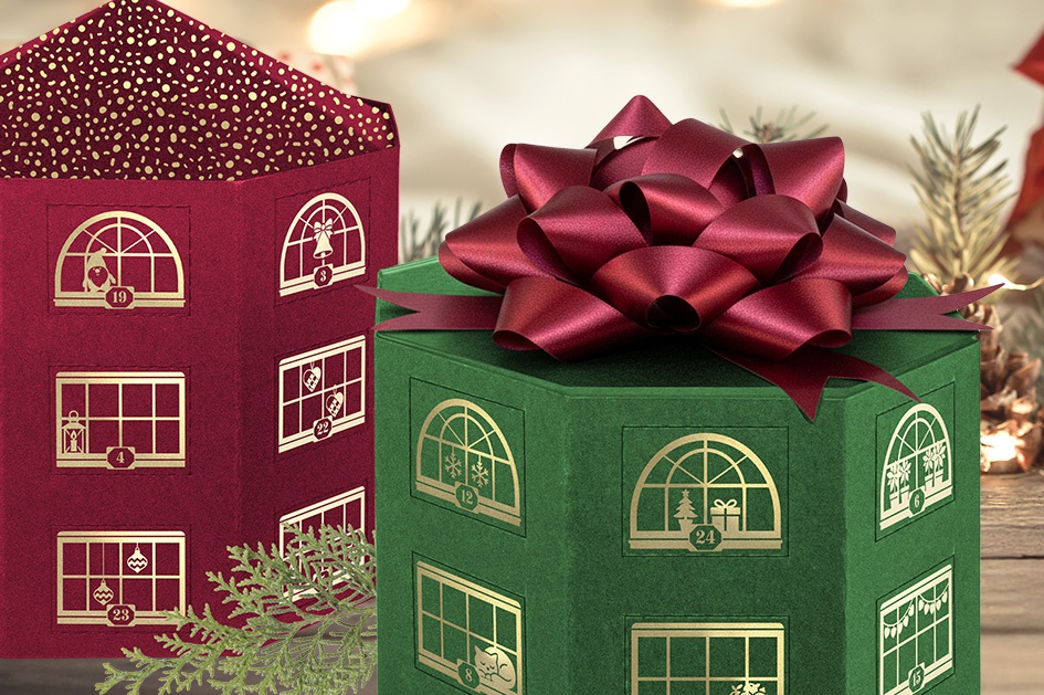Med denne kalender har vi ønsket at skabe en løsning, der både skiller sig ud visuelt og lever op til de stigende krav til materialebevidsthed og bæredygtighed. Hele konstruktionen er fremstillet i én samlet kartonkvalitet, hvilket gør kalenderen markant lettere, mere miljøvenlig og enkel at producere – samtidig med at emballageafgiften reduceres.